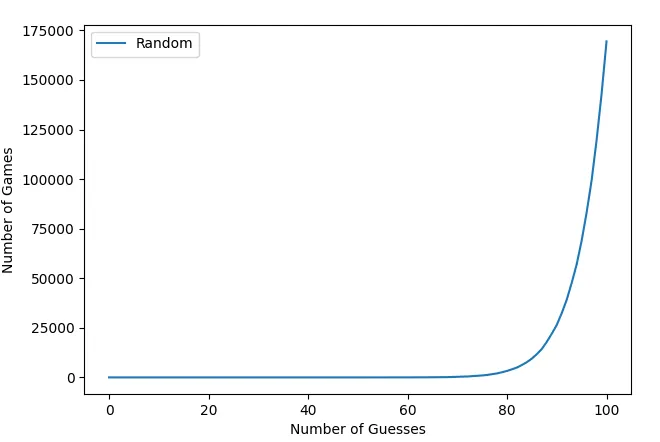An obvious, if completely awful, strategy that comes to mind is to just try guessing completely randomly. As you might expect, this results in very poor performance. If nothing else, this strategy will give us a lower bound on performance that we can use a benchmark against other strategies.
